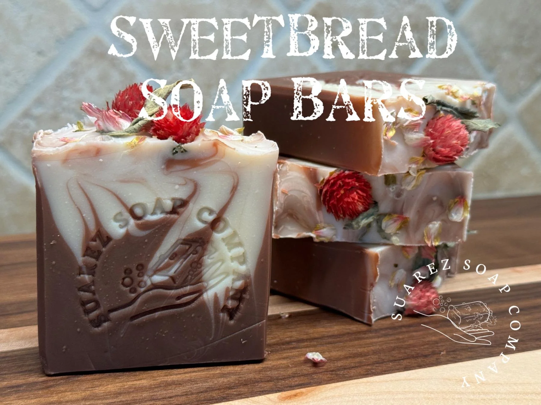 Experience the artisanal luxury of our large handcrafted soap bar, meticulously crafted with the sweet essence of honey and the nostalgic aroma of artisanal homemade bread. Infused with this delightful combination, each lather presents a warm and comforting embrace for your skin. Adorned with intricate brown and white delicate swirls, this soap bar is a visual masterpiece, while the charming addition of dried plum flowers on top adds a touch of elegance and natural beauty. Treat yourself to a sensorial journey with this exquisite soap bar, where the essence of honey and homemade bread intertwines to create a truly indulgent and soothing bathing experience.